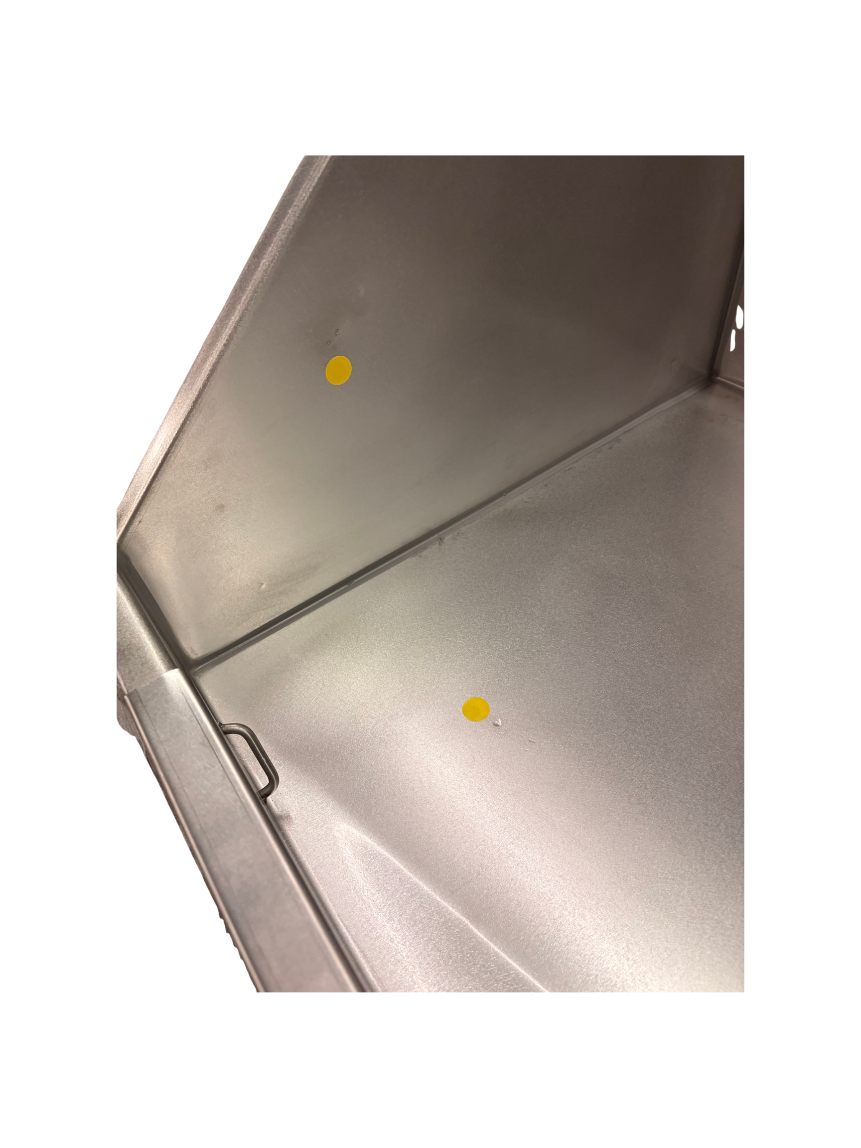 - Minor cosmetic dents on left side panel, back panel near upper left corner, and the center and left side of the bottom of the tub (pictured)