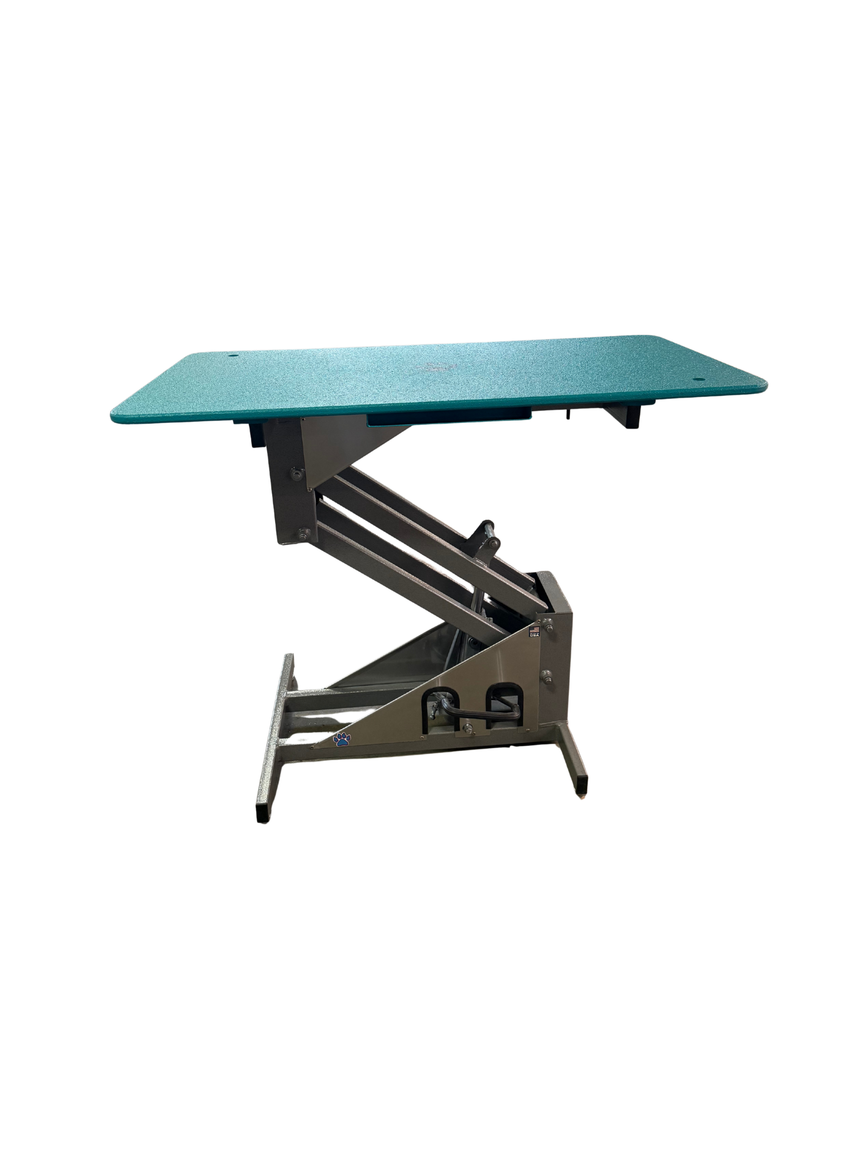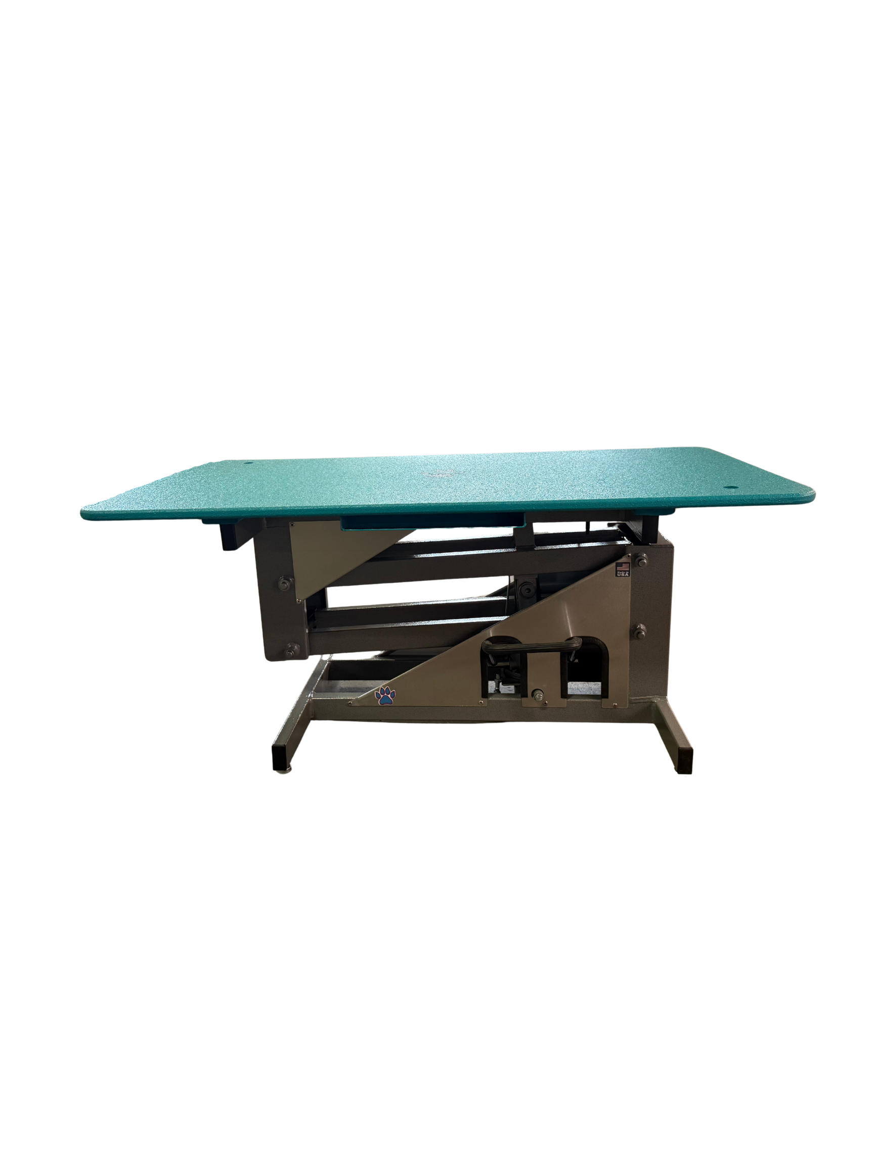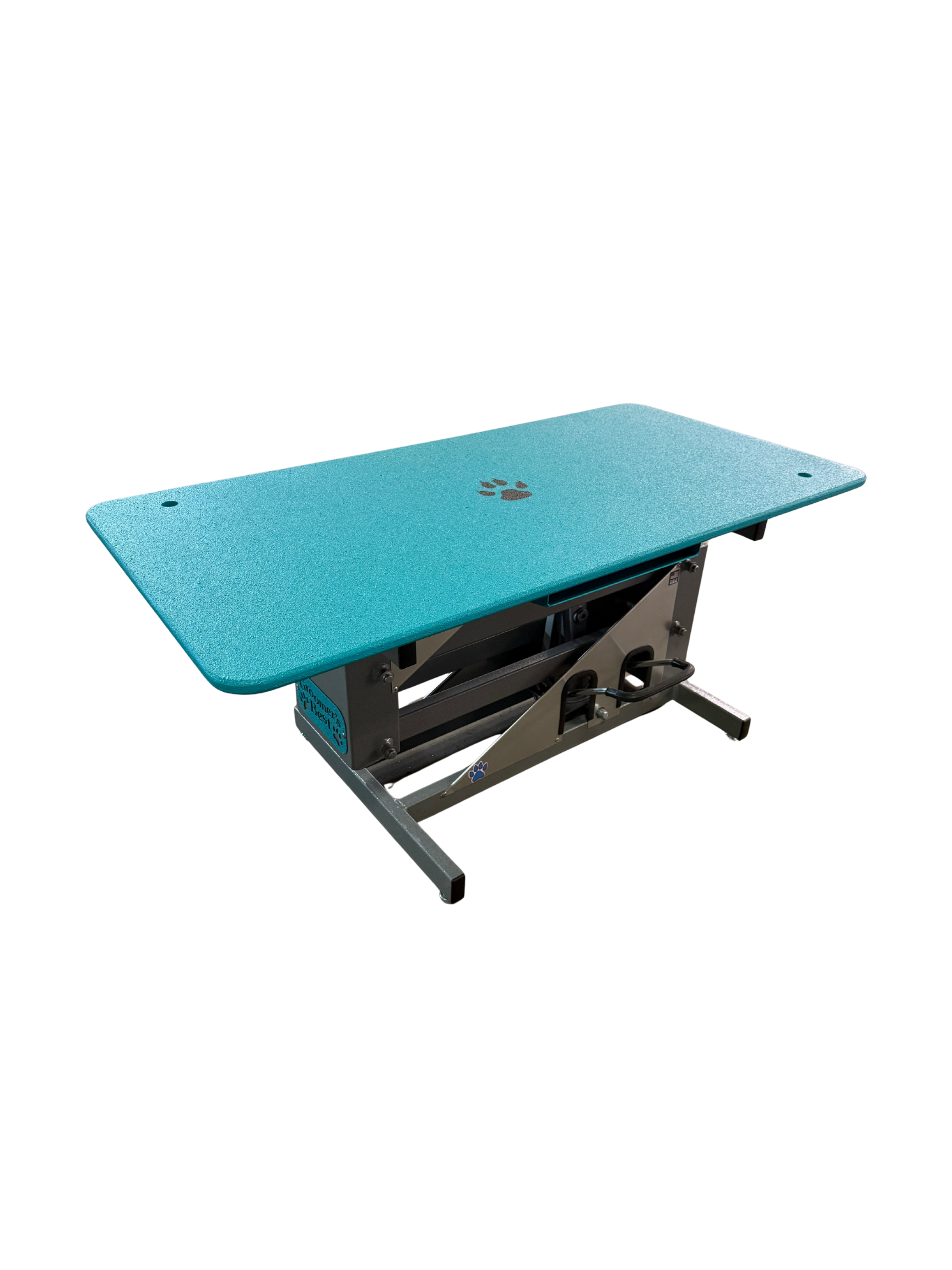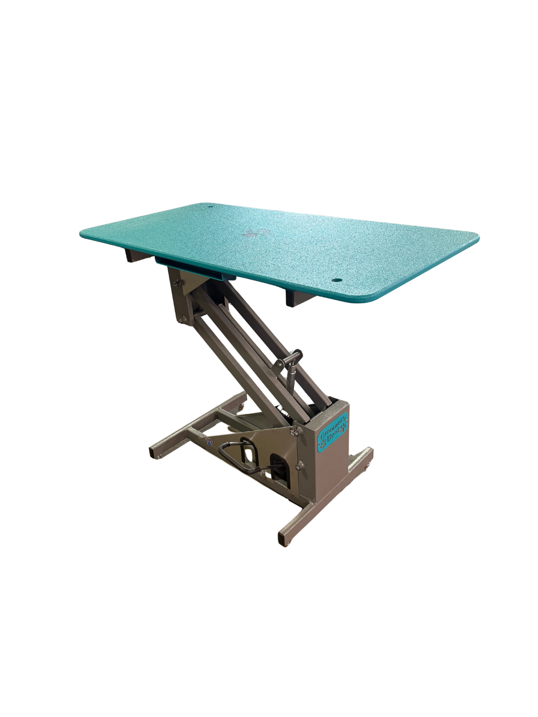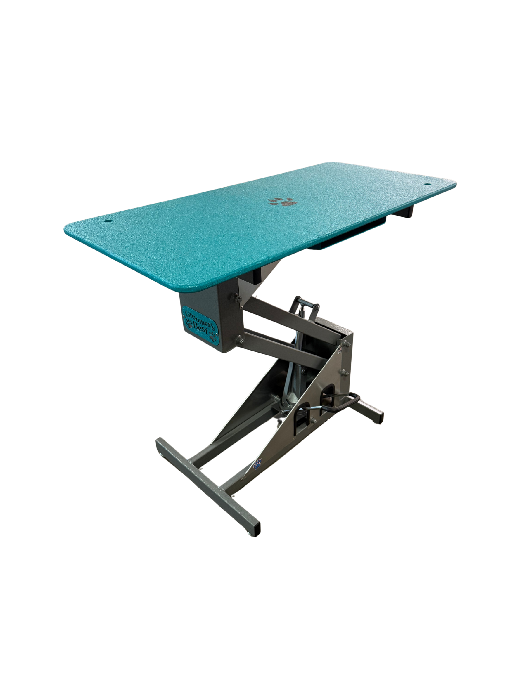 The foot-operated hydraulic lift allows for smooth height adjustment from 19” to 39”, ensuring optimal comfort for the groomer and a secure experience for pets of all sizes. The sturdy Z-Lift frame offers superior stability and effortless lifting, minimizing strain and maximizing control. The textured tabletop, reinforced with steel, provides a safe, easy-to-clean surface. With integrated storage on both sides, your scissors, clipper blades and guards stay within easy reach—helping you stay organized and efficient throughout the day.